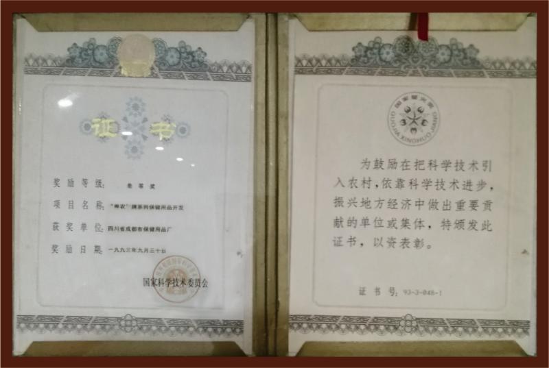 “神農(nóng)”牌系列保健用品開發(fā)榮獲國家星火獎三等獎