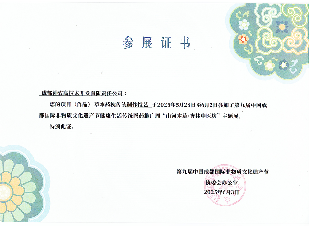 作為成都市第九批非物質文化遺產代表性項目,“草本藥枕(神農藥枕)傳統制作技藝”受邀參展。這也是繼1993年德國紐倫堡“新思維發明獎”之后,神農藥枕再度亮相國際舞臺,向世界展示中國傳統醫藥文化的深厚底蘊與現代價值。